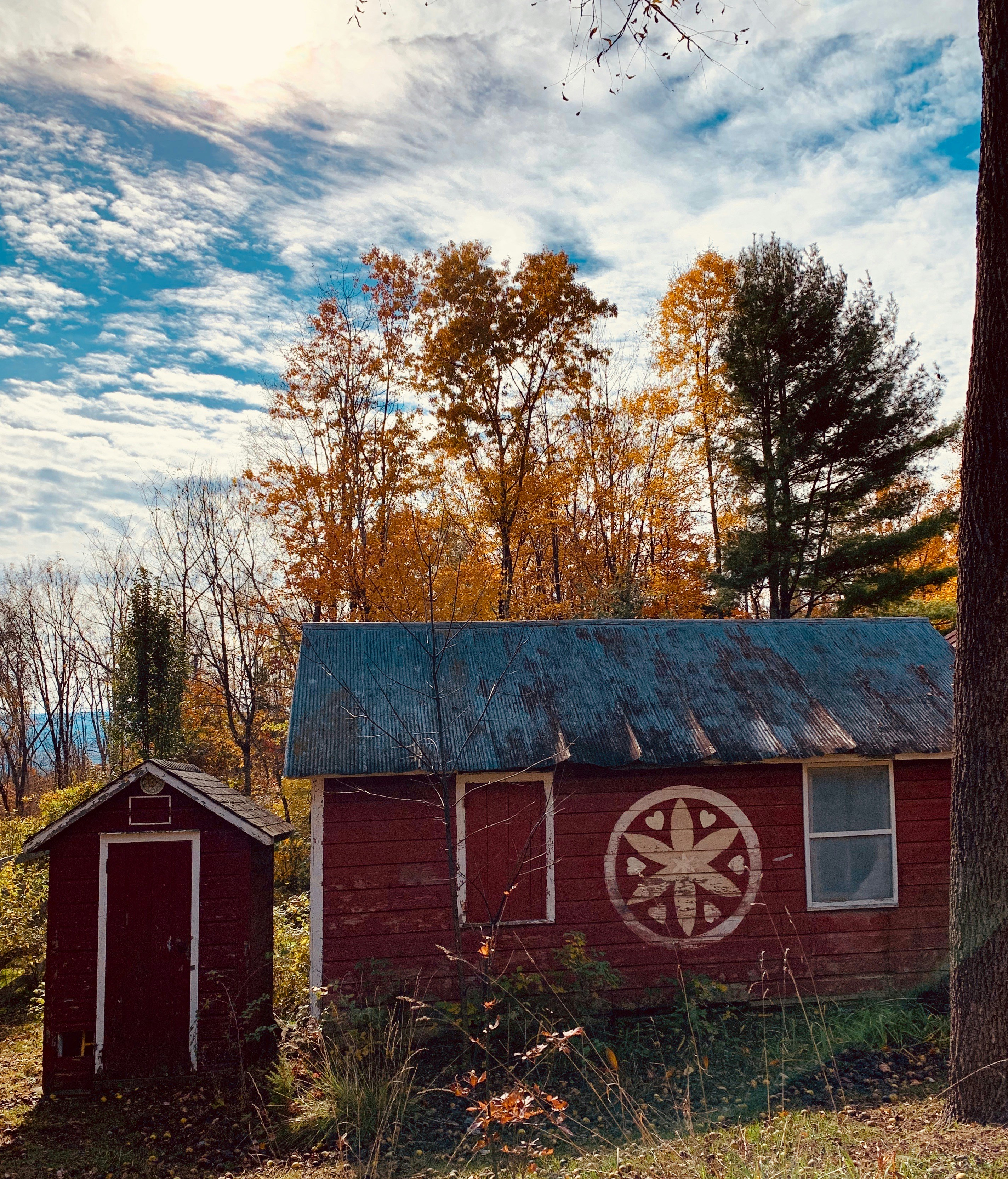 Fall colors, red barns, nature walks, peace, and country living.